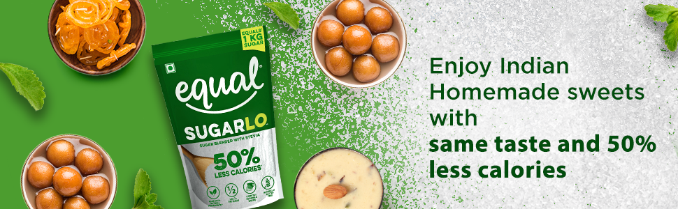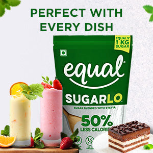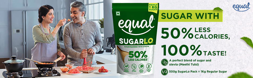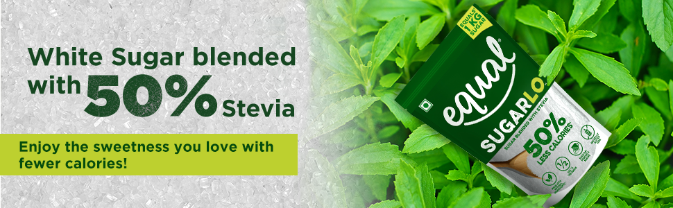 Equal SugarLo is a unique blend of sugar and Stevia (also known as meethi tulsi). Our unique all-natural formulation lets you reap the health benefits of Meethi Tulsi, while you enjoy the same sugar-like sweetness. Plus, it has 50% fewer calories than regular sugar.